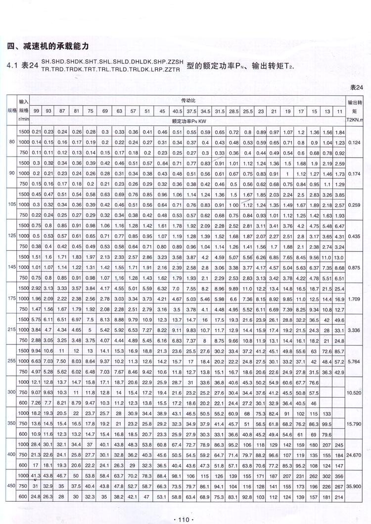 表28 ZZSH型減速器外形尺寸