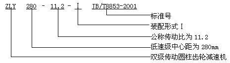 減速器的標記代號中包括減速器型號、公稱中心距、公稱傳動比和公稱輸入功率。