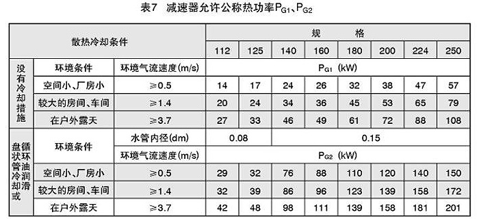 按潤滑油最高平衡溫度計算的公稱熱功率PG1、PG2,見表7
