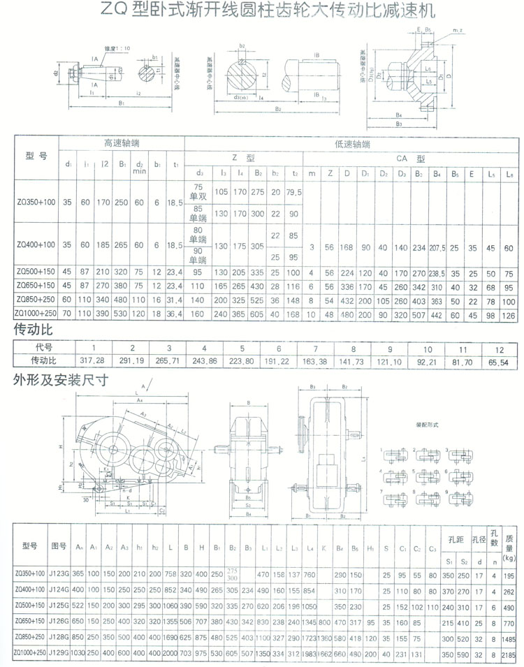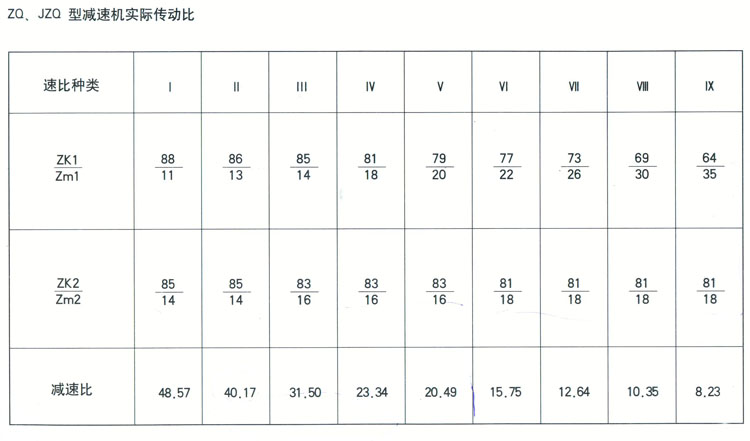 ZQ(JZQ),ZQH傳動(dòng)比有:48.57,40.17,31.5,23.34,20.49,15.75,12.64,10.35, 8.23,