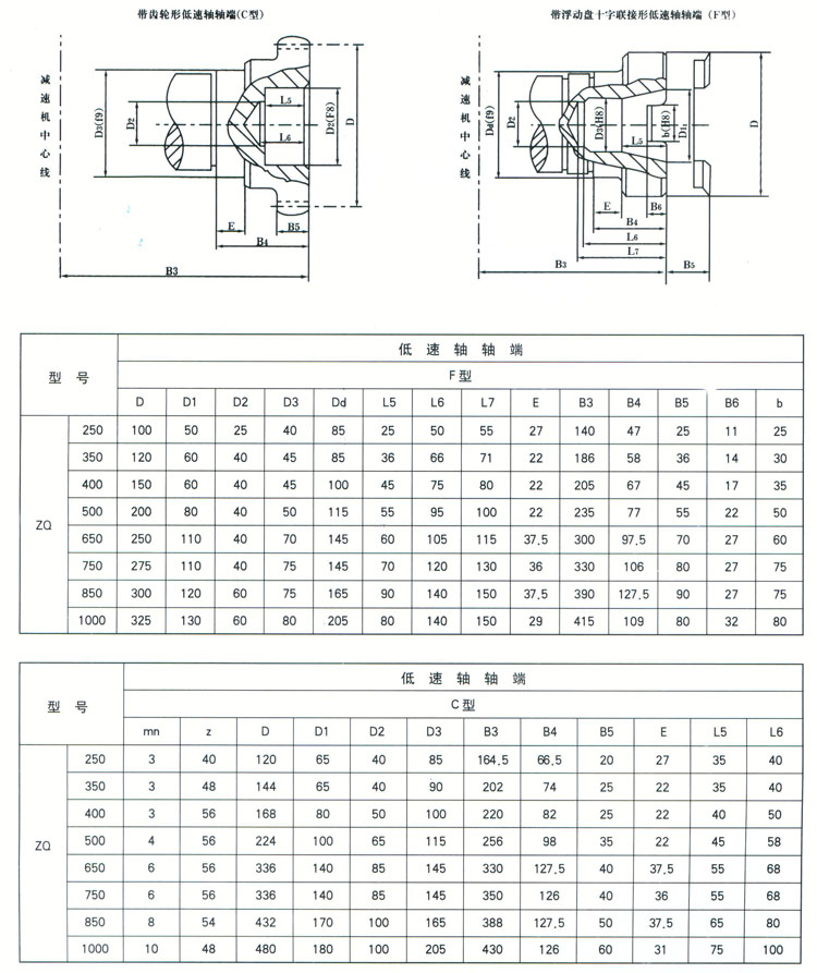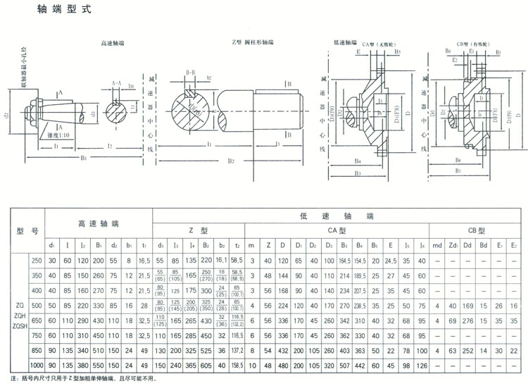 ZQ(JZQ),ZQH三種出軸形式有:圓柱型軸端,F(xiàn)為十字塊軸端,C CA為齒形軸端