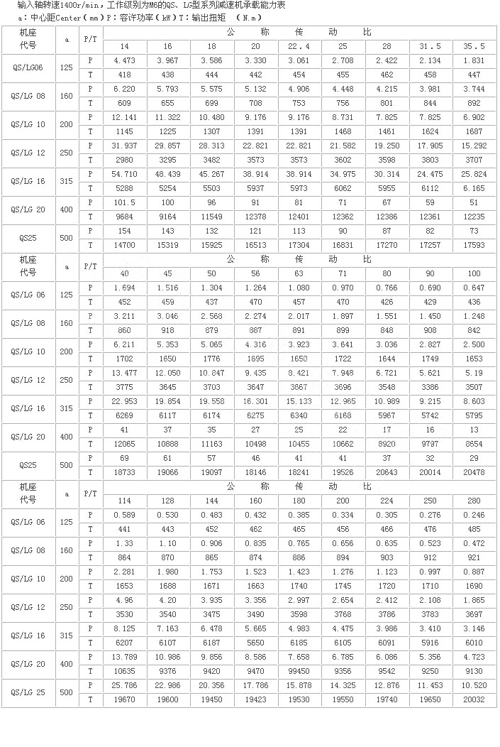QS、QSE、LG型系列“三合一”減速器采用漸開線圓柱齒輪傳動(dòng),具有平行輸出、結(jié)構(gòu)緊湊、傳遞扭矩大、工作平穩(wěn)、噪音低、壽命長(zhǎng)的特點(diǎn)。 2,LG型系列離合式輥道用減速機(jī)是我公司最新推出的專利產(chǎn)品,產(chǎn)品專利號(hào)為ZL9502026434.X,主要應(yīng)用于要求單向轉(zhuǎn)動(dòng)、連續(xù)工作的輥道輸送線,其輸出軸的超越離合裝置在減速機(jī)出故障時(shí),可保證輸出軸被動(dòng)旋轉(zhuǎn),而不影響輸送線停機(jī)。 3,減速器齒輪、齒輪軸均采用優(yōu)質(zhì)合金鋼材料,經(jīng)滲碳淬火、磨削處理后,齒面硬度和精度高,傳動(dòng)噪音低。